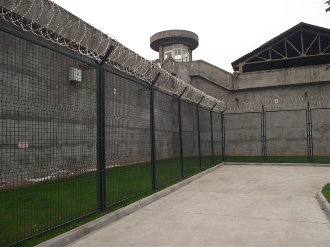 監(jiān)獄鍍鋅鋼網(wǎng)墻采用熱鍍鋅加噴塑塑層厚度0.2mm。連接件采用螺栓熱鍍