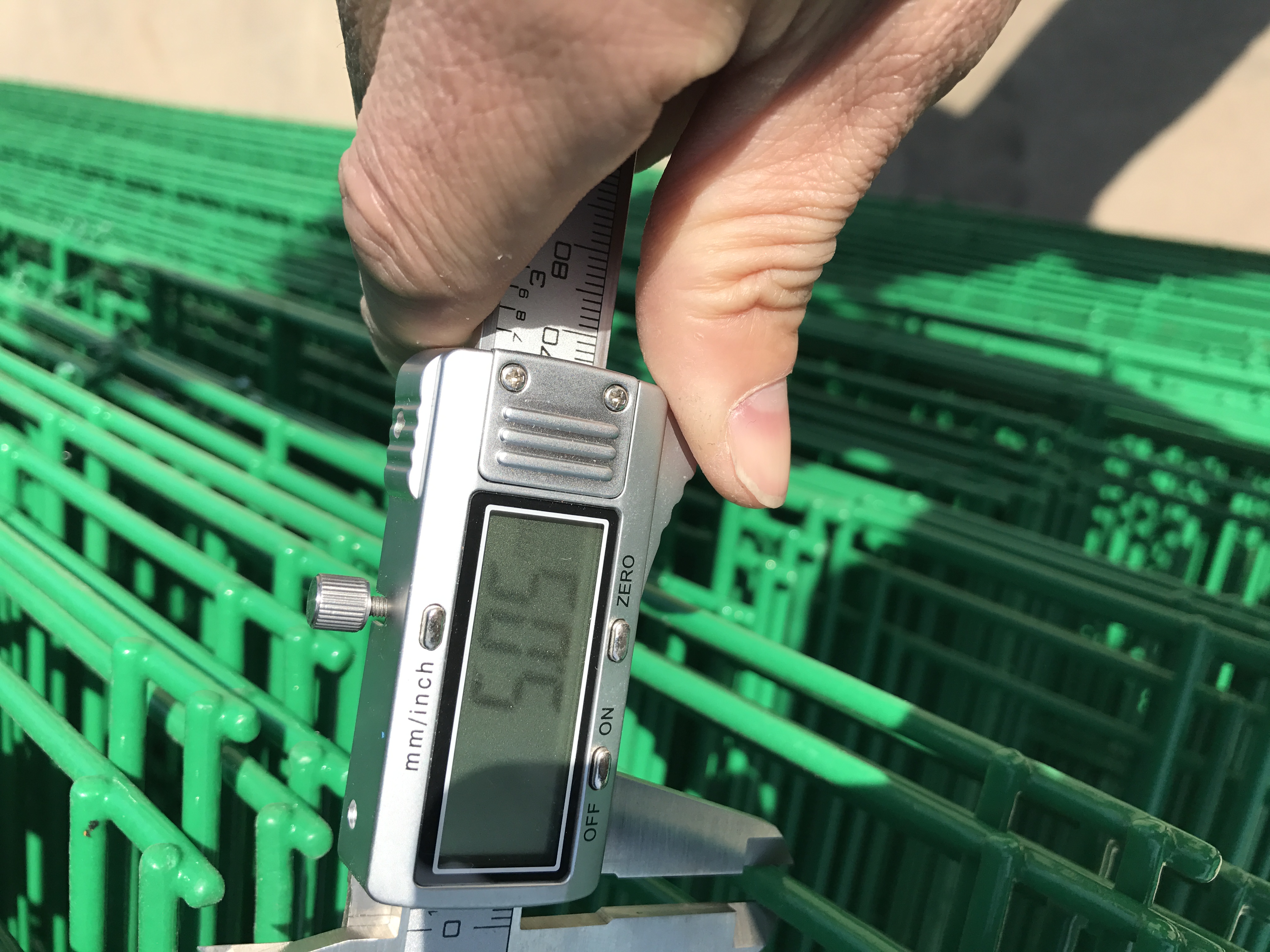 第二:鐵絲直徑。鐵絲的直徑的粗細決定了護欄網(wǎng)或圍欄網(wǎng)的價格,也是影響護欄網(wǎng)質量。丈量鐵絲網(wǎng)直徑的東西可所以測厚儀,也可所以游標卡尺,假如沒有就買一個,才幾十塊錢的東西,可是卻是您檢測護欄網(wǎng)或者圍欄網(wǎng)的一個重要工具。孰輕孰重客官老爺們請自己斟酌一下。